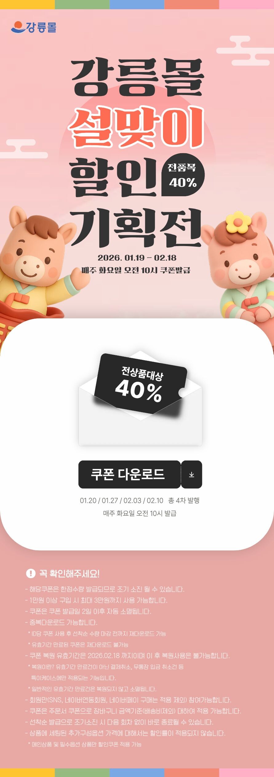 [종료] 2026 강릉몰 설맞이 기획전 전상품 40% 할인쿠폰 이벤트